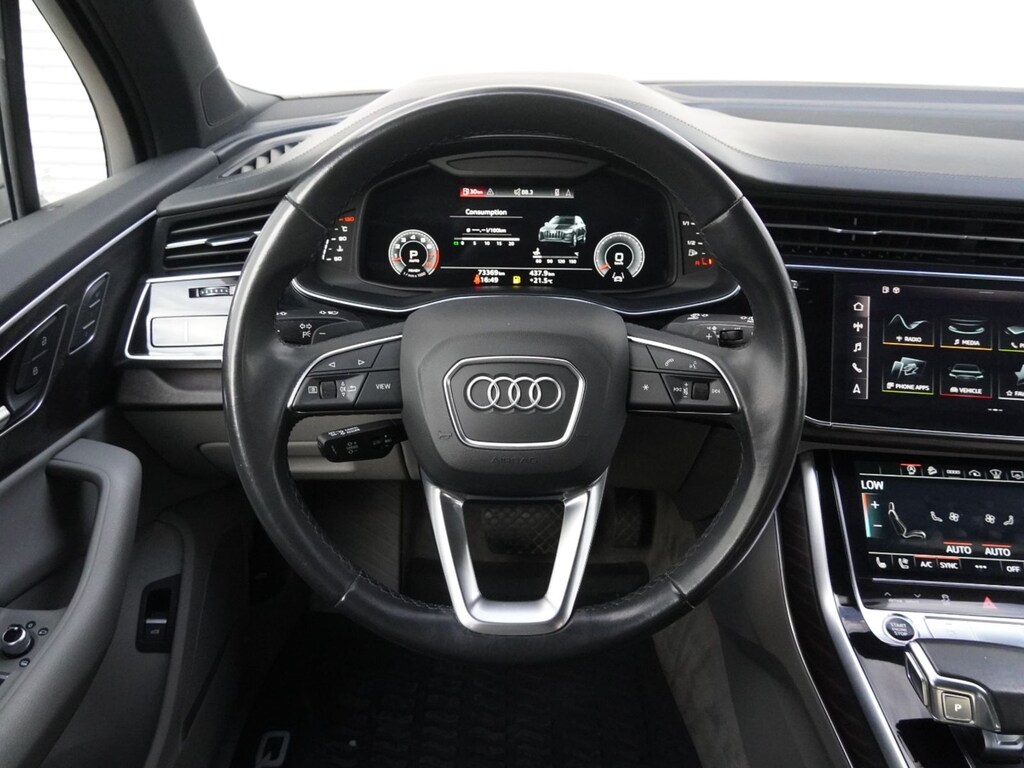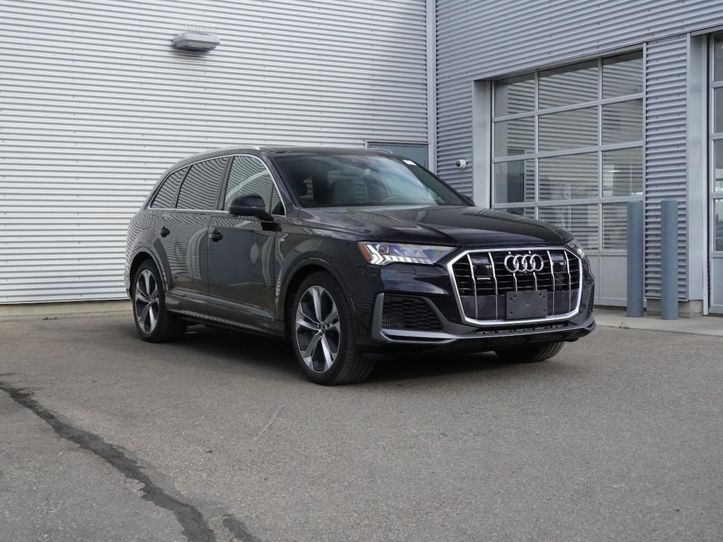 Technik | Low KM | Dealer Maintained | Experience Luxury and Performance with the Pre-Owned 2021 Audi Q7 Technik 55 TFSI quattro!This stunning Black Audi Q7 Technik 55 TFSI quattro is the epitome of style, sophistication, and innovation. Packed with premium features and cutting-edge technology, this vehicle offers a luxury driving experience like no other. Here's a brief overview of what this incredible Audi Q7 has to offer:- DRIVER ASSISTANCE PACKAGE: Stay safe and confident on the road with advanced driver assistance features such as Adaptive Cruise Control, Lane Departure Warning, and Automatic Emergency Braking.- 21 WHEEL PACKAGE W/5-DOUBLE SPOKE MODULAR DESIGN: Make a statement with the stylish 21 wheels that enhance the overall aesthetic of the vehicle.- TRAILER HITCH (7,700LBS): Whether you're towing a trailer or heading out on a weekend adventure, this Audi Q7 is equipped with a trailer hitch for added convenience.- 4 WHEEL STEERING: Experience enhanced agility and responsiveness with the innovative 4 Wheel Steering system, making every drive a joy.- Luxurious Interior: Step inside the premium leather-appointed interior with features such as Heated and Cooled Front Seats, Panoramic Roof, and Leather Steering Wheel for a comfortable and enjoyable ride.- Advanced Technology: Stay connected and entertained with the Navigation System, Premium Sound System, and Bluetooth Connection, while the Heads-Up Display and Adaptive Cruise Control enhance your driving experience.- Safety Features: Drive with peace of mind knowing that this Audi Q7 comes equipped with a suite of safety features including Blind Spot Monitor, Rear Collision Mitigation, Automatic Highbeams, and more.Don't miss out on the opportunity to own this exceptional pre-owned 2021 Audi Q7 Technik 55 TFSI quattro. Contact us today to schedule a test drive and elevate your driving experience to the next level!
