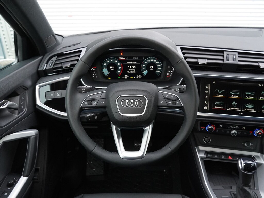 Komfort | Ex-Loaner Incoming | Introducing the all-new 2025 Audi Q3 40 TFSI quattro, where style, performance, and innovation seamlessly come together to elevate your driving experience.With its dynamic design and luxurious features, this Audi Q3 is ready to turn heads wherever you go. The Mythos Black Metallic exterior paired with the rear spoiler and LED headlights exude a sense of sportiness and sophistication.Step inside the cabin and be greeted by the comfortable and stylish Black Leather Seating Surfaces. Take control of your drive with the Leather Steering Wheel and Driver Adjustable Lumbar support, ensuring optimal comfort for even the longest journeys.Experience peace of mind with advanced safety features like Front Collision Mitigation, Rear Parking Aid, and the Back-Up Camera, providing assistance and alertness in any situation. The Rain Sensing Wipers and Automatic Headlights add convenience to your daily commutes, while the Privacy Glass keeps you protected from prying eyes.Unleash the power of the 4 Cylinder Engine and the precise handling of All-Wheel Drive, giving you confidence and control on any road. The Brake Actuated Limited Slip Differential and Stability Control enhance performance and handling, making every twist and turn an exhilarating experience.Stay connected on the go with Smart Device Integration, Bluetooth Connection, and the Telematics system. The 8-Speed Automatic Transmission with Dual Shift Mode ensures smooth gear changes, while the Steering Wheel Audio Controls keep your music and calls at your fingertips.The Panoramic Roof and Generic Sun/Moonroof open up the cabin, allowing natural light to flood in and elevate your driving experience. And with the Power Liftgate, loading and unloading your cargo becomes effortless.The Vorsprung Edition Package, Audi Phonebox Antenna with Charging, and Homelink add even more convenience and luxury to your Q3, elevating it to the next level.Don't miss the chance to own the all-new 2025 Audi Q3 40 TFSI quattro. Visit us today to see this exceptional vehicle in person and experience the Audi difference for yourself. Your adventure starts here.