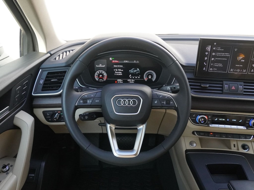 Progressiv | Ex-Loaner |Introducing the all-new 2025 Audi Q5 Progressiv Progressiv 45 TFSI quattro, the epitome of elegance, performance, and innovation. Get ready to elevate your driving experience with these outstanding features:Elegant Design: With a sleek Mythos Black Metallic exterior and Gray-Brown Birch natural wood inlays, the Q5 Progressiv catches everyone's attention. Its smooth lines, LED headlights, and panoramic roof create a harmonious and sophisticated look.Advanced Safety: Stay confident on the road with a comprehensive selection of safety features. The Top View Camera and Park Assist make parking a breeze, while multiple airbags, ABS, and traction control ensure peace of mind during your journeys.Luxury and Comfort: The premium leather seats, power-adjustable driver and passenger seats with memory, and multi-zone climate control guarantee a comfortable ride no matter the weather. For added convenience, the Q5 Progressiv features keyless entry, a power liftgate, and a universal garage door opener.Cutting-Edge Technology: The Audi Q5 Progressiv is equipped with the latest technology to enhance your driving experience. Stay connected with the intuitive navigation system and enjoy your favorite music with the AM/FM stereo, satellite radio, MP3 capability, and Bluetooth connection. The Audi Virtual Cockpit and steering wheel audio controls put all the information and entertainment you need at your fingertips.Efficient Performance: Powered by a 4-cylinder engine with turbocharged technology and a gasoline/mild electric hybrid system with a lithium-ion traction battery, the 2025 Q5 Progressiv delivers both power and fuel efficiency. Its all-wheel-drive capability ensures exceptional handling and control on any road.Advanced Driver-Assist Features: The Q5 Progressiv takes safety to the next level with features like adaptive cruise control, blind spot monitor, lane departure warning, and front collision mitigation. Experience the future of driving with assistance systems that help keep you safe and alert behind the wheel.Don't miss the chance to experience the unrivaled luxury, technology, and innovation of the 2025 Audi Q5 Progressiv Progressiv 45 TFSI quattro. Contact us today and schedule a test drive to discover a new level of driving excellence.