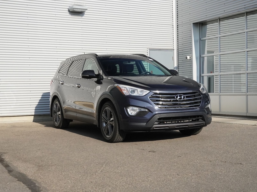 Limited | One Owner | Alberta Vehicle | Introducing the pre-owned 2014 Hyundai Santa Fe XL Limited AWD 4dr 3.3L Auto Limited w/6-Passenger in a stunning Blue exterior color and Black interior. Packed with luxury and safety features, this vehicle is the epitome of style and comfort.- Immerse yourself in the elegance of the Woodgrain Interior Trim and Leather Steering Wheel.- Stay safe and aware on the road with features like Blind Spot Monitor, Rear Parking Aid, and Back-Up Camera.- Enjoy the convenience of Heated Front Seat(s), Heated Steering Wheel, Cooled Front Seat(s), and Heated Rear Seat(s) for ultimate comfort.- Experience superior sound quality with the Premium Sound System, Satellite Radio, and Bluetooth Connection.- Navigate effortlessly with the Navigation System and stay entertained with MP3 Capability and CD Player.- Drive with confidence knowing you have features like Stability Control, Traction Control, ABS, and 4-Wheel Disc Brakes for added safety.- The Panoramic Roof provides a breath-taking view, and the Power Liftgate adds convenience to your daily routine.- With seating for six in the 3rd Row Seats, this Hyundai Santa Fe XL offers versatility for your passengers and cargo needs.This pre-owned Hyundai Santa Fe XL Limited is a rare find, offering luxury, performance, and safety features all in one package. Don't miss out on the opportunity to own this exceptional vehicle. Contact us today to schedule a test drive and elevate your driving experience to the next level!
