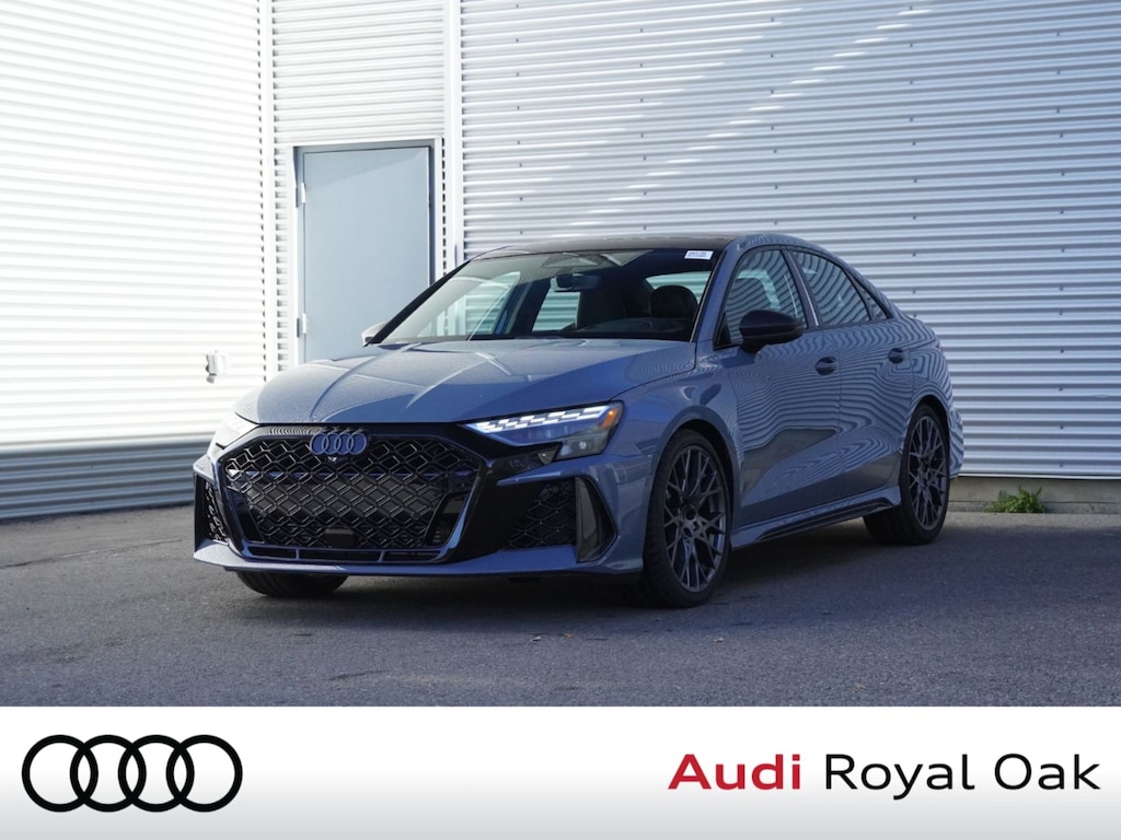 Introducing the all-new 2026 Audi RS 3 2.5 TFSI quattro in stunning KEMORA GRAY METALLIC!Unleash the power of the 5-cylinder engine with turbocharged performance, all-wheel drive capability, and precision handling that defines the legendary Audi RS lineup. With the CARBON OPTIC PLUS PACKAGE and luxurious BLACK FINE NAPPA LEATHER interior, every drive is elevated to a first-class experience.Get ready to explore new horizons with cutting-edge features like the HEAD-UP DISPLAY, NAVIGATION SYSTEM, and innovative safety technologies including BLIND SPOT MONITOR and LANE DEPARTURE WARNING. Stay connected on the go with SMART DEVICE INTEGRATION, WIFI HOTSPOT, and the convenience of KEYLESS ENTRY and KEYLESS START.Whether you're cruising down the highway or carving through corners, the 2026 Audi RS 3 blends exhilarating performance with sophisticated comfort. Don't miss your chance to own the pinnacle of automotive excellence. Contact us today to schedule your test drive and experience the future of driving with the Audi RS 3!